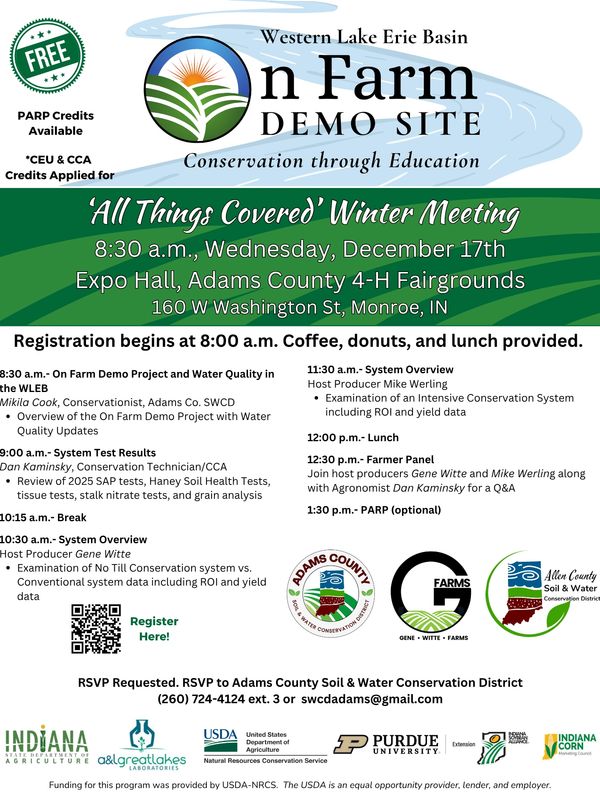 Adams County SWCD board meetings are open tot he public. Join us the 3rd Tuesday of the month at the USDA Service Center.